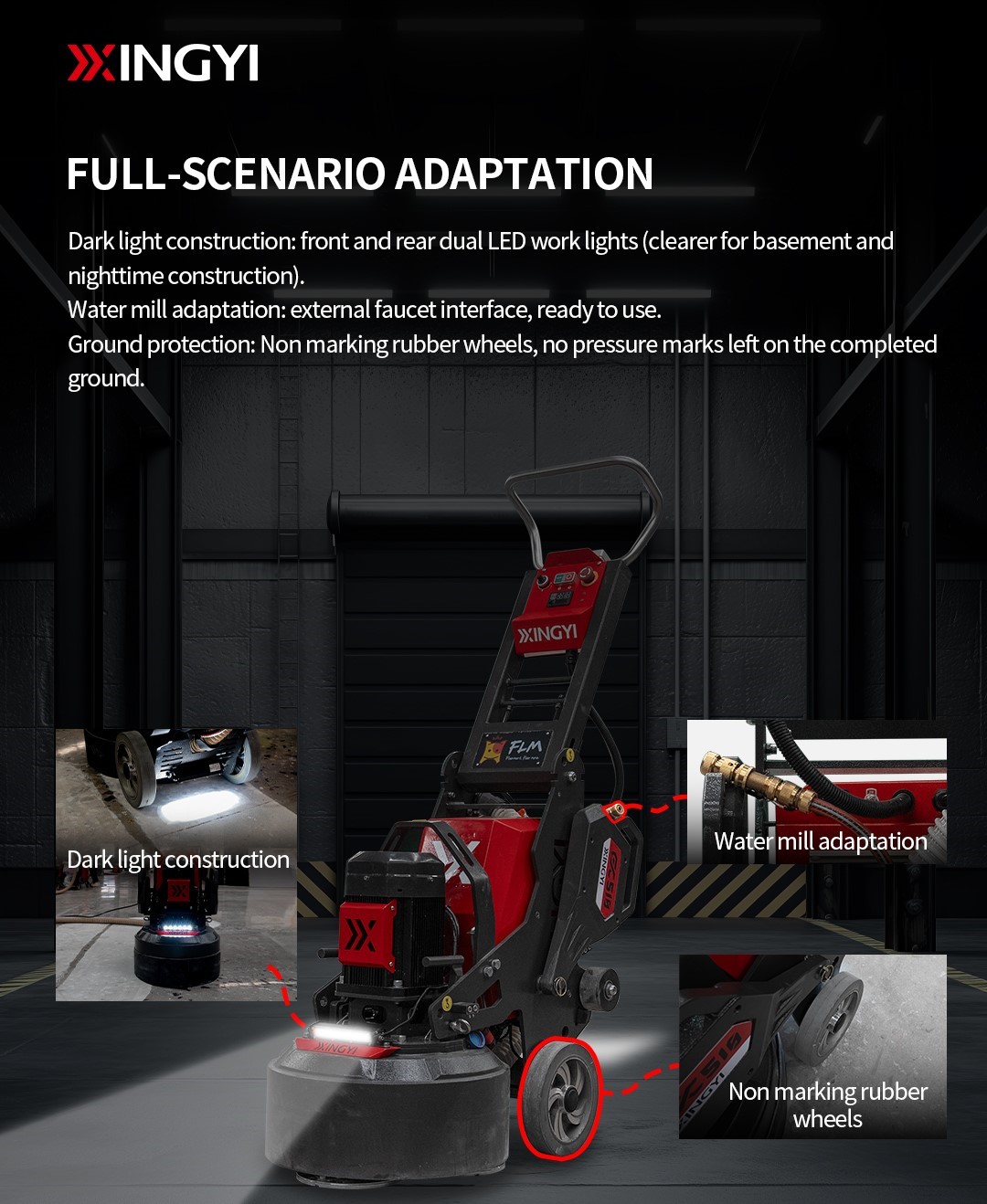 Driven with the core value to provide excellence, XINGYI focuses on research and development of manual floor grinding and Hi-technology machine innovations; with this in mind and advocacy for self-propelled technology, leads to the development of automated and remote controlled grinding machines. High precision gear driven mechanism for enhance productivity with smart control features that are indeed user-friendly.